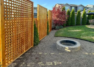 Vertical Slat Cedar Fence Topped with Horizontal Slats With Custom Entry Way
